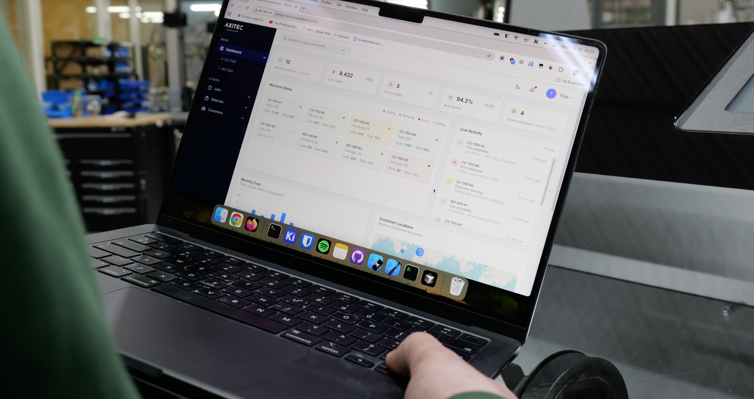 Das CS-1100 kann mit einer integrierten Überwachung und Maschinendatenerfassung ausgestattet werden. Während des Betriebs sammelt das System Daten über die Maschinennutzung, die Leistung und mögliche Abweichungen.